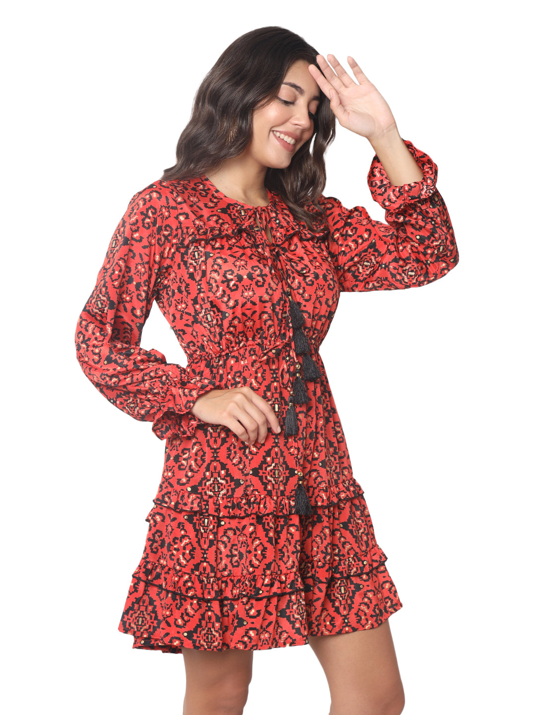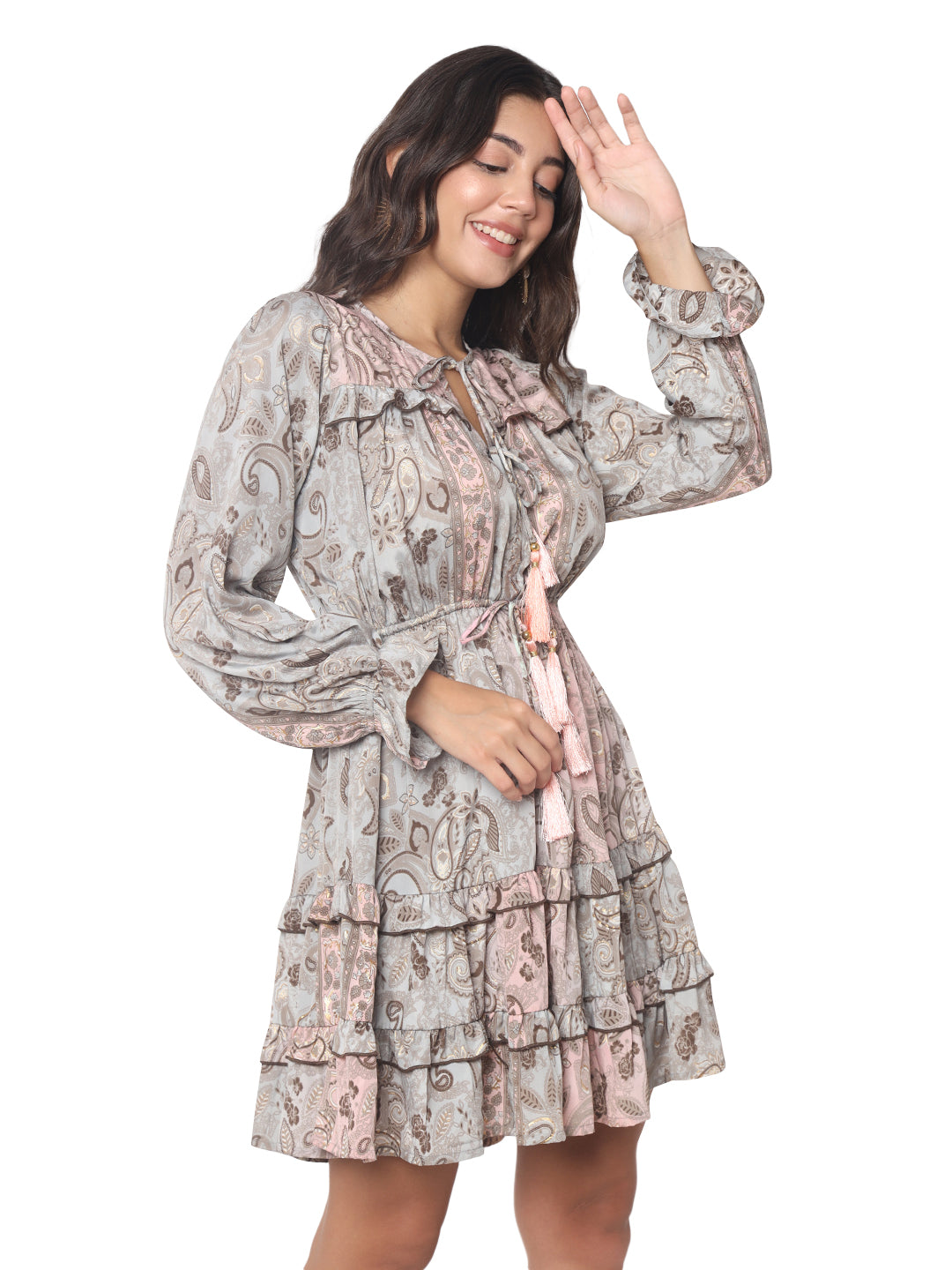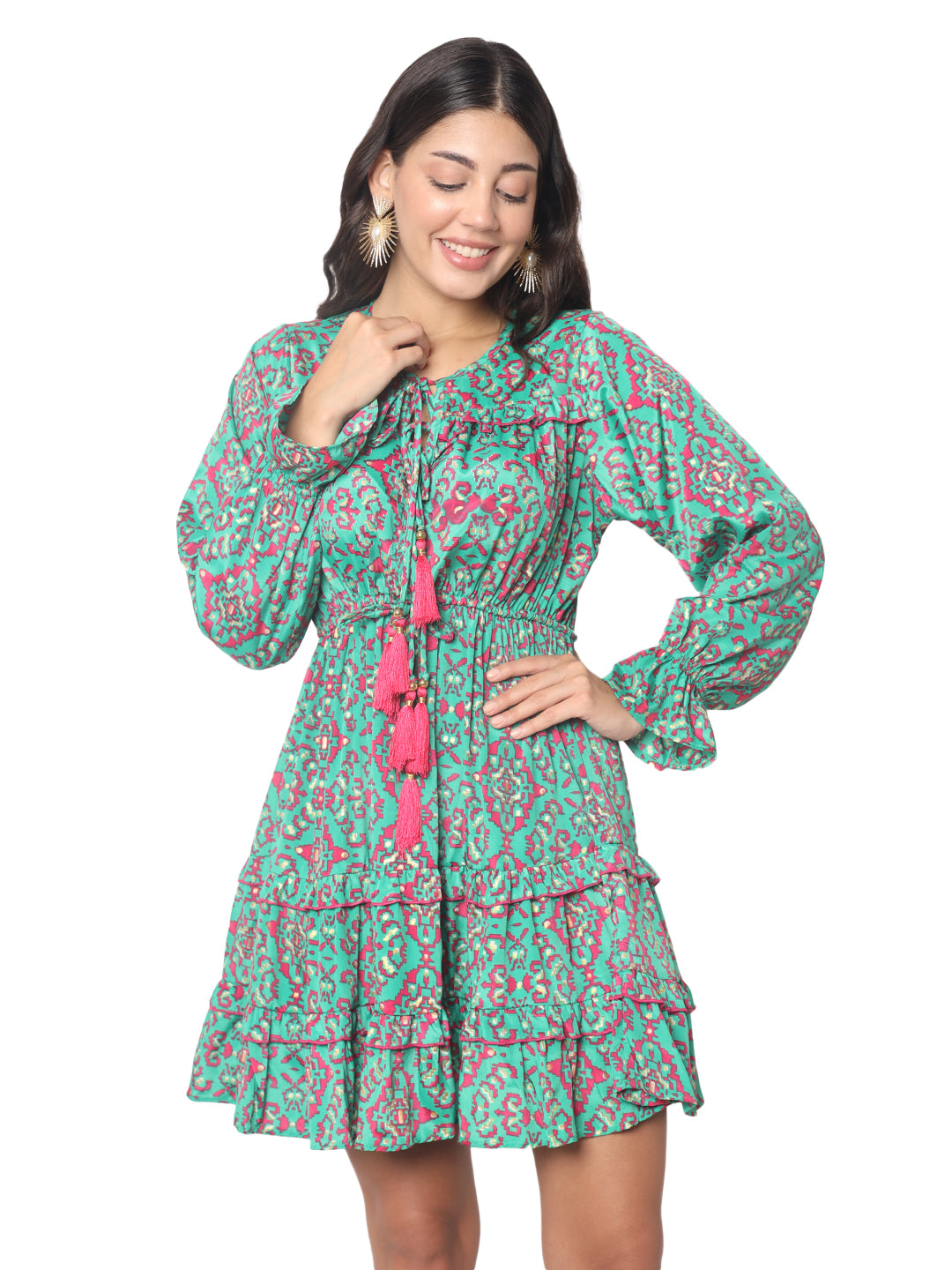 Olizzo is a Delhi-based premium manufacturer and exporter of women’s fashion wear, specializing in boho-style Kasturi silk dresses with gold foil print and tassel detailing. Crafted in soft Art Silk/Seda, these flowy, tiered short dresses are a perfect fit for Ibiza fashion, beachwear collections, and bohemian boutiques. Our high-demand styles, loved in France and the Netherlands, are available under OEM and white label production with worldwide shipping.