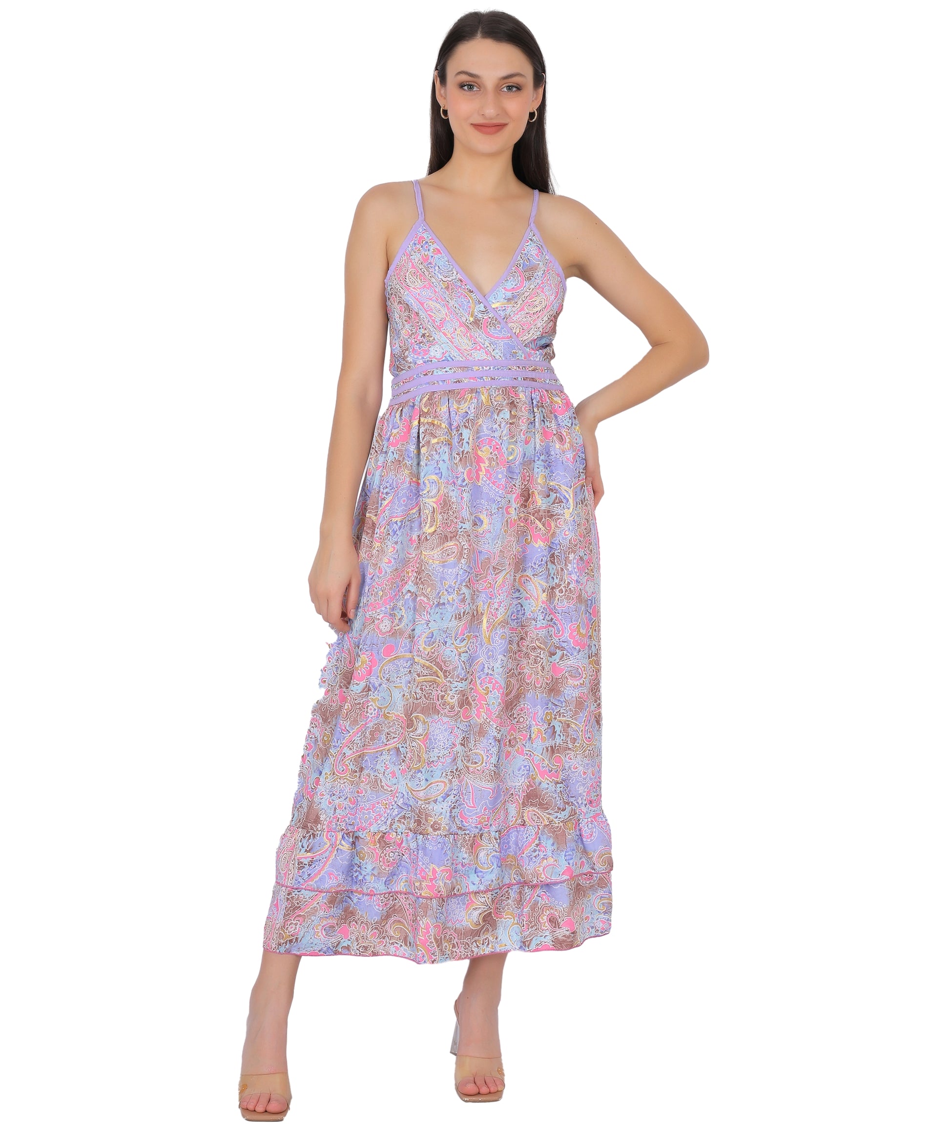 Boho Silk Long Dress | Free Size Tu | Pastel Indian Saree Dress